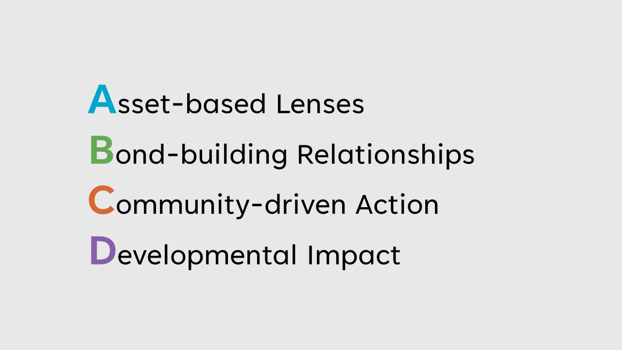 Developmental Impact: The belief that strong communities are those that use their own collective power and assets to achieve self-defined goals. In short, a successful ABCD effort grows the capacity of a community to shape its own future.